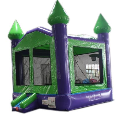 The Bounce House is a vibrant green and purple dry bouncer rental built for backyard parties, school events, and community gatherings. Inflated dimensions are 14 feet long x 14 feet wide x 13 feet high, creating a spacious jump area. This commercial-grade inflatable supports 900 lbs total and 225 lbs per rider for safe, active fun. 🏰