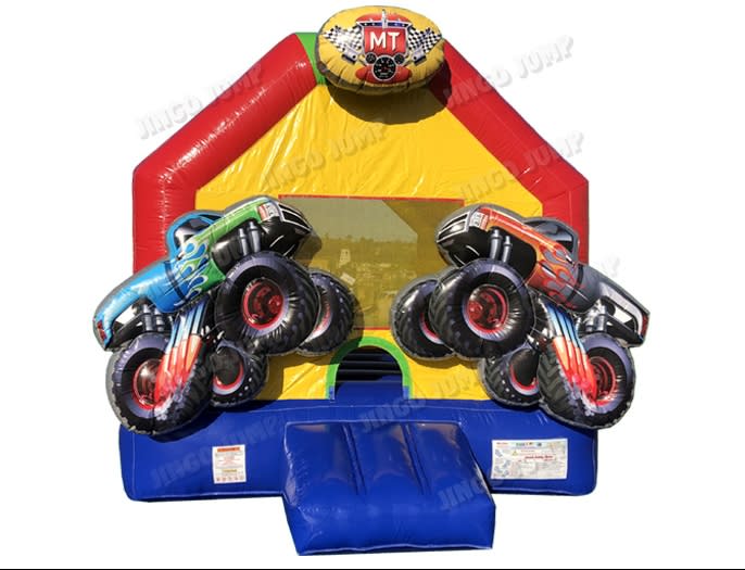 The 13' monster truck bouncer delivers big fun in a compact footprint. Built for dry use only, this 13′ L x 13′ W x 15′ H inflatable features a shaded roof and a built-in basketball hoop. Durable design. Eye-catching monster truck graphics. Easy setup. Perfect for backyard parties, school events, and community fairs.