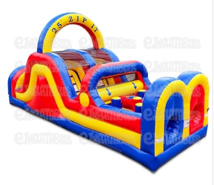 Bring high-energy fun to your next event with the Obstacle Course. This 25' Zip It Dual Lane Obstacle Course delivers a fast-paced run thrill as Kids climb through the bulls eye, weave past pop-ups, squeeze through tubes, climb the ladder, then race down the slide. Perfect for birthday parties, community events, and backyard fun. 🎉🏊♂️🧩